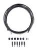 Das Kit setzt sich zusammen aus geschmierter Zughülle, extrem reibungsarmen Edelstahlzügen, reibungsarmen beschichteten Klemmhülsen, Rahmenschützern und Zugendkappen für vordere und hintere Rennradbremsen.