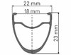 Verarbeitung: gesteckt; Bremsentyp: Scheibenbremse; Ösen: keine; ETRTO: 622 x 18; ERD: 596; Äußere Breite / Höhe: 23 mm / 23 mm; Ventilloch: Ø 6.5 mm; Speichen: DT competition®, DT aerolite®, DT aero comp®; max. Speichenspannung: 1200 N