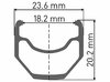 Verarbeitung: SBWT geschweisst; Bremsentyp: Scheibenbremse; Ösen: doppelt geöst; ETRTO: 622 x 19; Breite / Höhe: 23.6 mm / 20.2 mm; Ventilloch: Ø 6.5 mm; Felgenband: 622 x 18; Reifendimension: 700 x 1'C - 2.35'C; Fahrergewicht max.: 130 kg; Riding Style: Touring