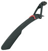 Das MTB-Schutzblech NIGHTBLADE aus schlagfestem Hochleistungskunststoff bietet dank des Frontspoilers und des extralangen Backspoilers nicht nur einen optimalen Spritzschutz. Durch das integrierte Rücklicht mit StVZO-Zulassung garantiert der Radschützer auch mehr Sicherheit im Straßenverkehr. Der Rückstrahler mit integriertem Akku ist herausnehmbar und kann einfach über USB mit neuer Energie geladen werden. Die Spoiler aus weicherem Kunststoff dienen gleichzeitig als Kantenschoner beim Auf- und Absteigen. Durch die einfache Quick-Release-Befestigung lässt sich das NIGHTBLADE mit Powerstraps an fast jede Sattelstütze montieren und durch die 2-Gelenk-Technik optimal ans Mountainbike anpassen.