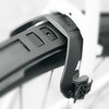 Nachwuchs in der Velo-Familie: Das Radschutz-Set VELOFLEXX 65 29‘‘ aus schlagfestem Hochleistungskunststoff vereint die Stabilität eines festmontierten Schutzbleches mit der Flexibilität eines Steckradschutzes. Durch die VELOFLEXX-Brücke lässt sich der Hinterradschutz anhand von Gummistraps oben an der Sitzstrebe werkzeugfrei befestigen. Sollte trotz Scheibenbremsen ein Quersteg zwischen den Sitzstreben vorhanden sein, muss der Abstand zwischen Reifen und Quersteg 30 mm betragen, damit das Fahrrad mit dem VELOFLEXX Radschutz kompatibel ist. Vorne wird das VELOFLEXX an der Gabelbrücke mit einem gummierten Klettstrap oder Kabelbinder befestigt. Die Rahmenadapter machen die Montage an jeder Gabel möglich und sind zudem winkelverstellbar. Für noch mehr Halt sorgen die schwarz beschichteten Streben. Das VELOFLEXX-Set ist für Fitnessbikes, Mountainbikes und City Bikes geeignet. Klettstraps und Gummistraps sind im Lieferumfang enthalten.