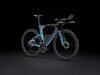 Einen ultraleichten Rahmen aus 800 Series OCLV Carbon, windschnittige Rohre mit Kammtail Virtual Foil Profil (KVF), eine Speed Concept Carbongabel mit aerodynamischem Profil, vibrationsdämpfendes IsoSpeed und integrierte Aufbewahrungslösungen für Verpflegung, Flüssigkeit und Pannenkit. Dazu gibt es einen drahtlosen, elektronischen Shimano Ultegra Di2 12fach-Antrieb, eine vollständig integrierte Lenker/Vorbau-Einheit, einen triathlonspezifischen Bontrager Hilo Comp Sattel für eine aggressive Aero-Sitzposition, Scheibenbremsen für zuverlässige Bremsleistung und Bontrager Aeolus Pro 51 Laufräder aus OCLV Carbon.